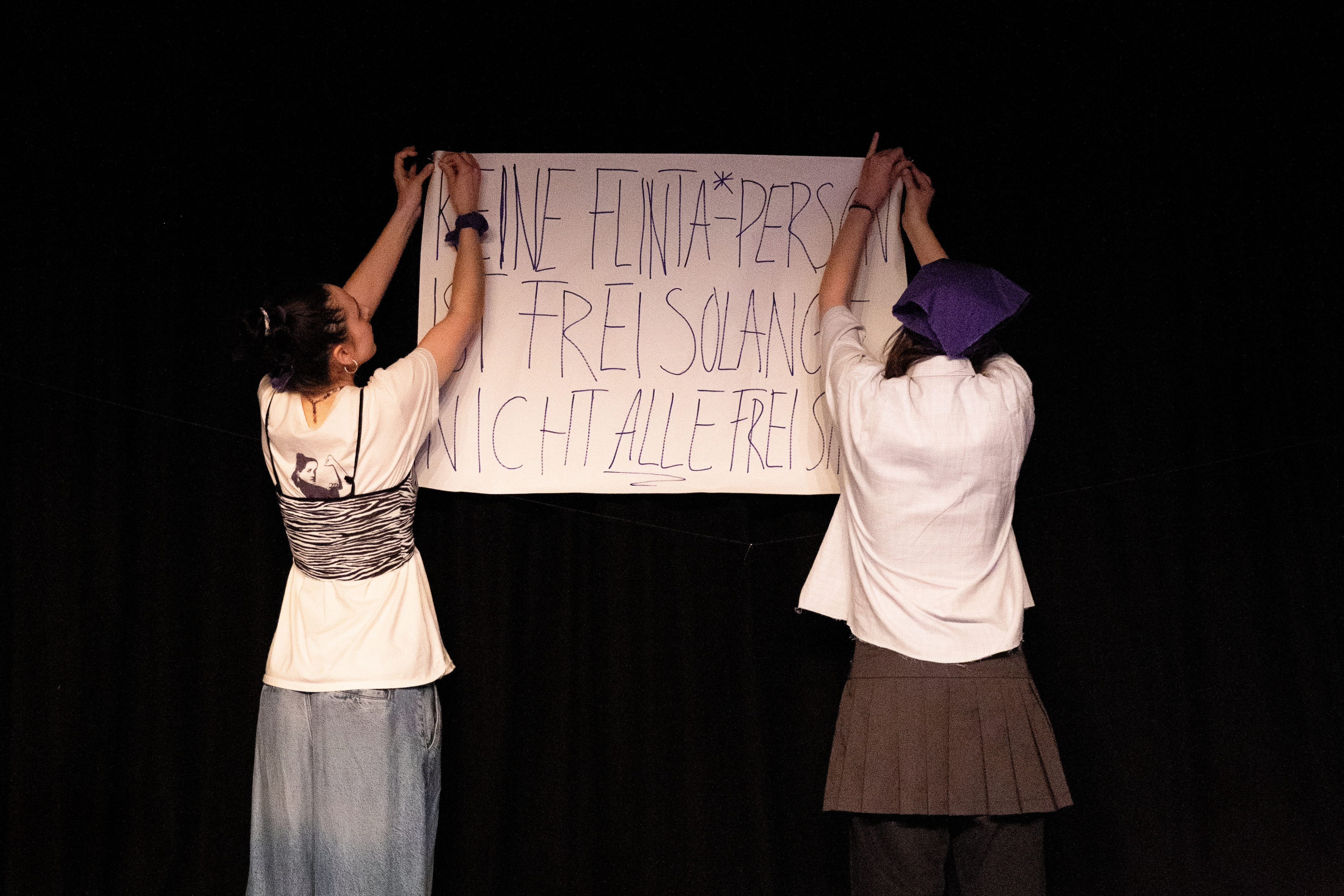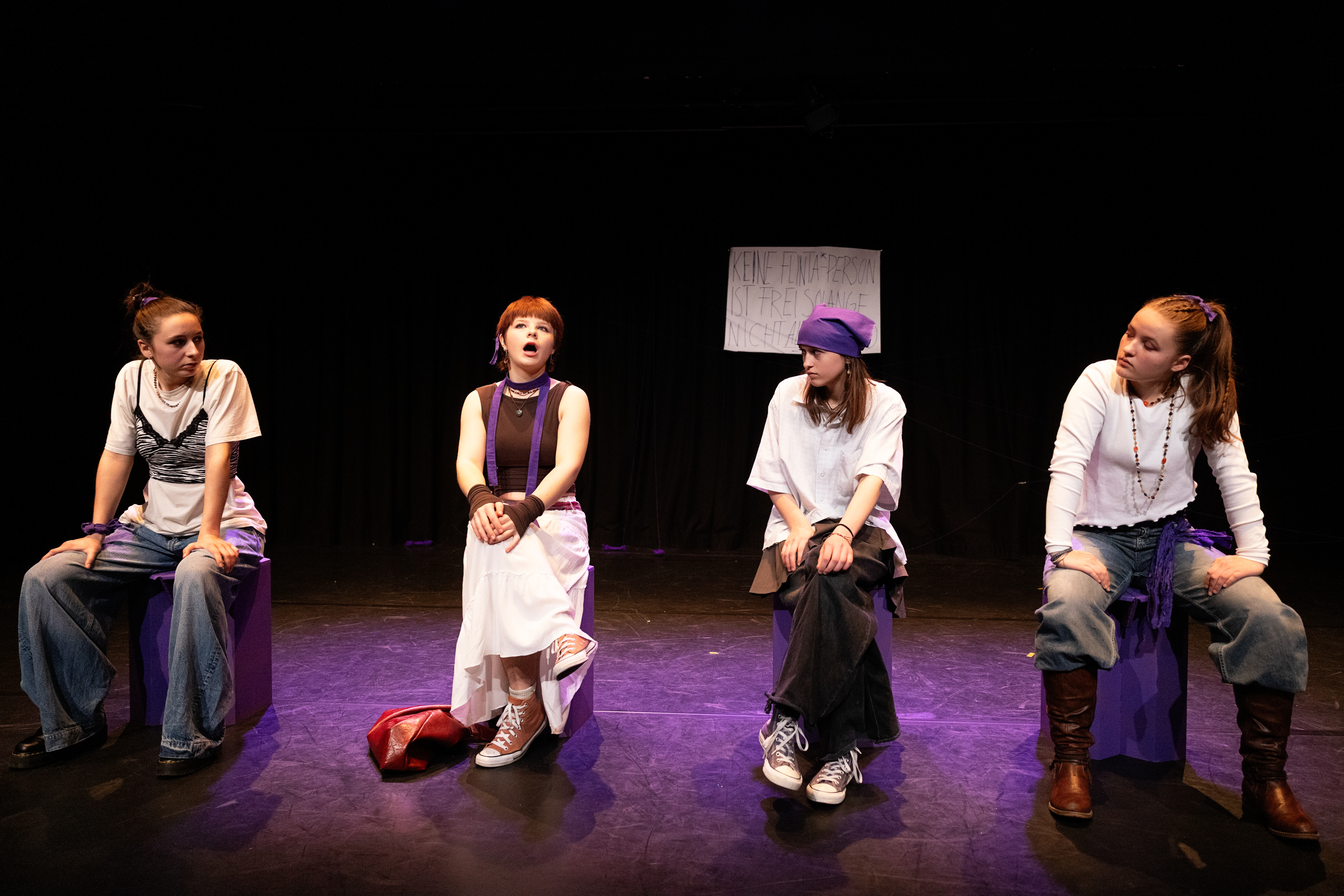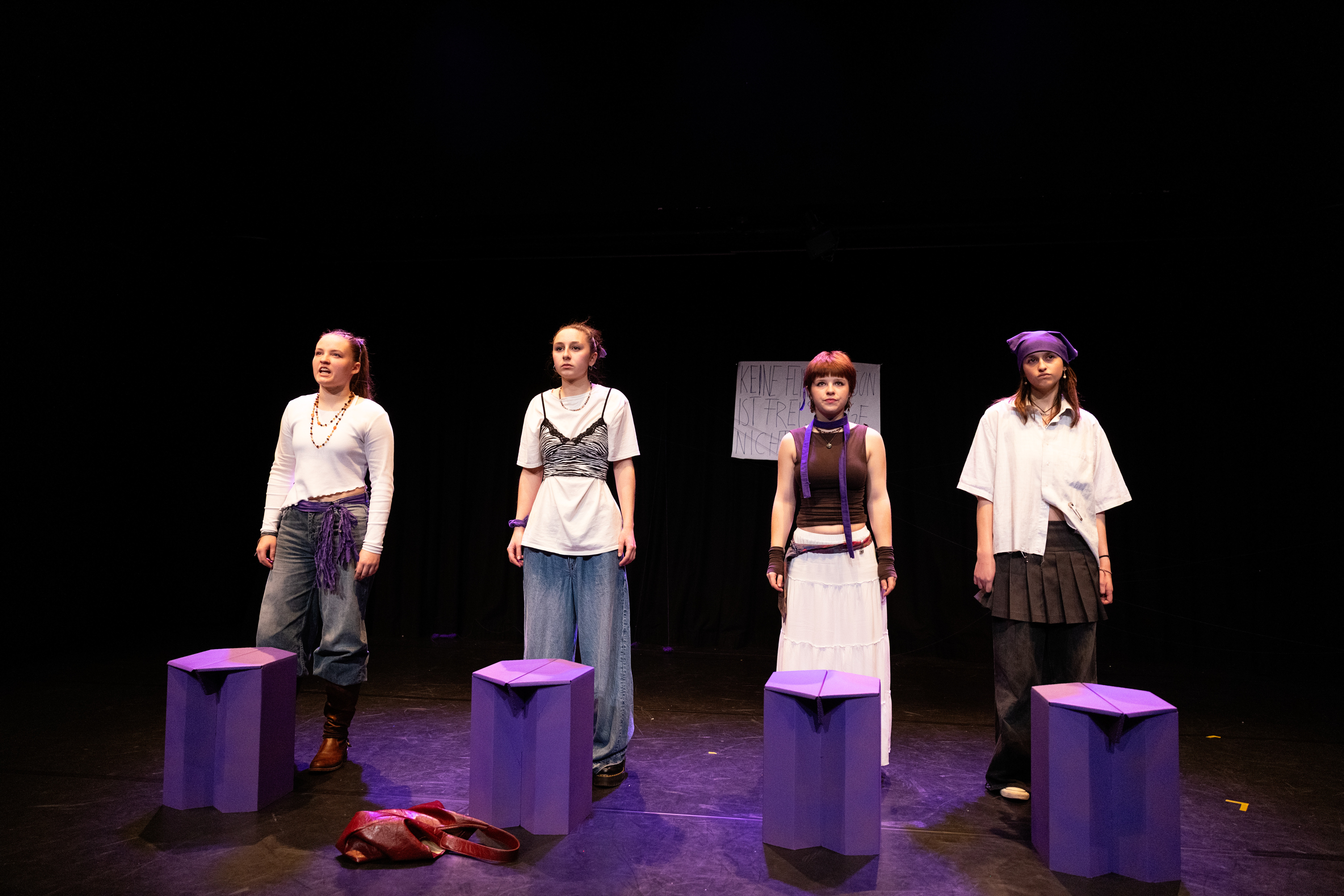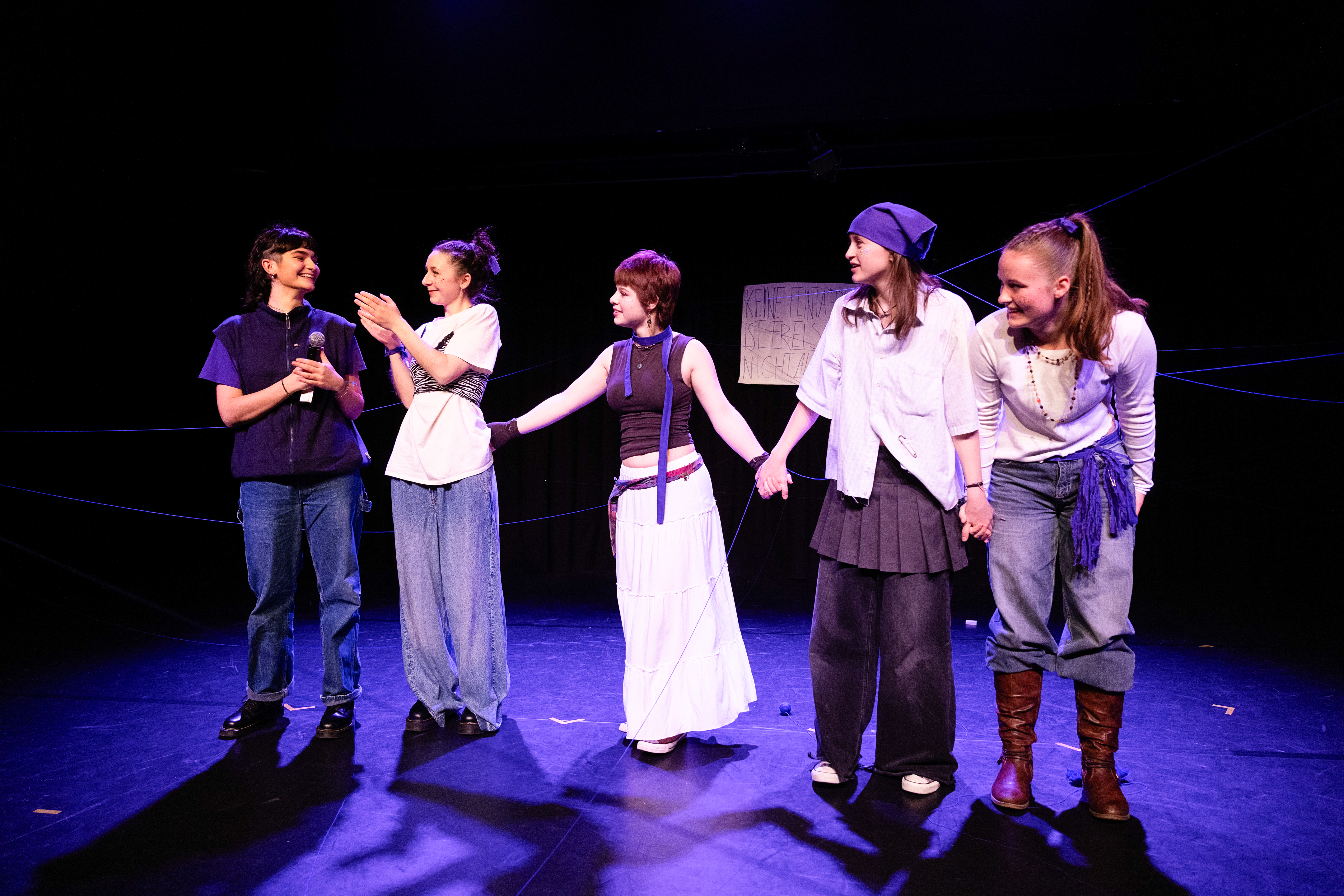 Wir sind fünf junge Frauen, die sich vier Monate lang mit dem Thema Schwesterlichkeit beschäftigt haben. Wir haben viel geredet, ausprobiert, diskutiert und gelacht. Entstanden ist ein Theaterstück über das Miteinander und die Verbundenheit, aber auch über das, was uns trennt und trotzdem zusammenhält.